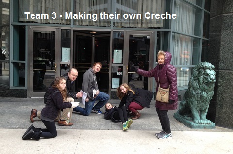 On Saturday, December 27th, 2014 we held the second FB Challenge of 2014. The location for this challenge was the Windy City. This challenge was a scavenger hunt, with each team racing through the North Loop/River North area, getting points and learning about Chicago landmarks and history. The Challenge - Attached you will find the detailed guide for this challenge. Megan, Kathi, and Kelly developed the challenge with the help of some great online resources. Click here for challenge guide: 2014 FB Chicago Challenge The Teams - The selection committee developed balanced, competitive teams using a sophisticated tool to measure factual Chicago knowledge. Click here for roster: Team Roster |
